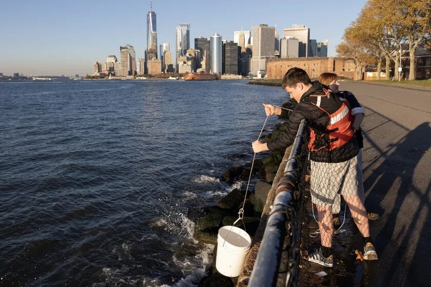 Each school day around 400 students ferry over to Governors Island and alongside their math and writing curriculums the harbor at the foot of their school building serves as their “outdoor laboratory.” Over the years their school projects have intertwined with efforts to improve the Bay. Significantly, students work with the Billion Oyster Project, a Governors Island-based non-profit dedicated to reseeding the bay with a billion oysters. Oysters (which I will cover in depth here in the future) have remarkable filter features which help to literally clean the toxins out of our waters. Their beds simultaneously help provide a base for rebuilding the complex habitats that make an ecosystem thrive. If you visit the Billion Oyster Project you might find Harbor School students growing the spats that will become the oysters that will go into the bay or decked out in SCUBA gear ready to install a new oyster “farm” into the harbor waters. The Harbor School is a model for what all NYC high schools should be—a mix of traditional academics and engaged in meaningful exchange with the world. It is the reality of the Harbor School that gave rise to a dream of the Central Park Pasture School.